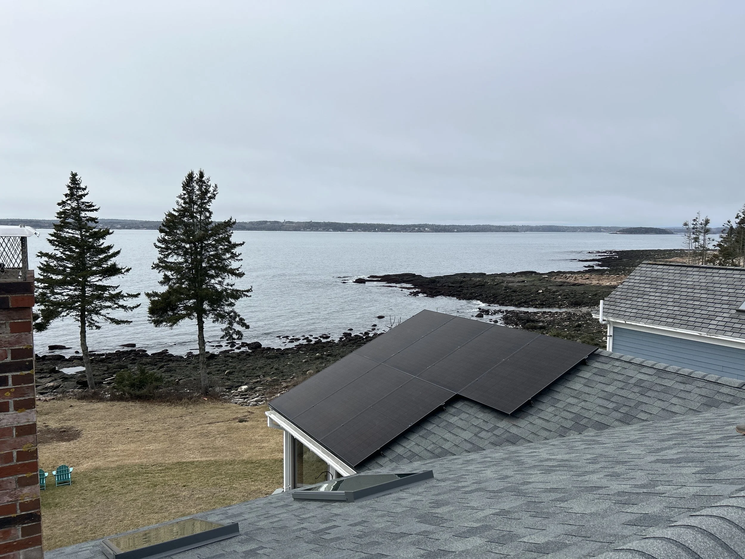 An amazing install in Bristol, ME with a great view of our Maine Coast. This install has 22 Q Cell 400’s and we installed some Solar Snow Dogs on the array above the garage to help with snow shed.