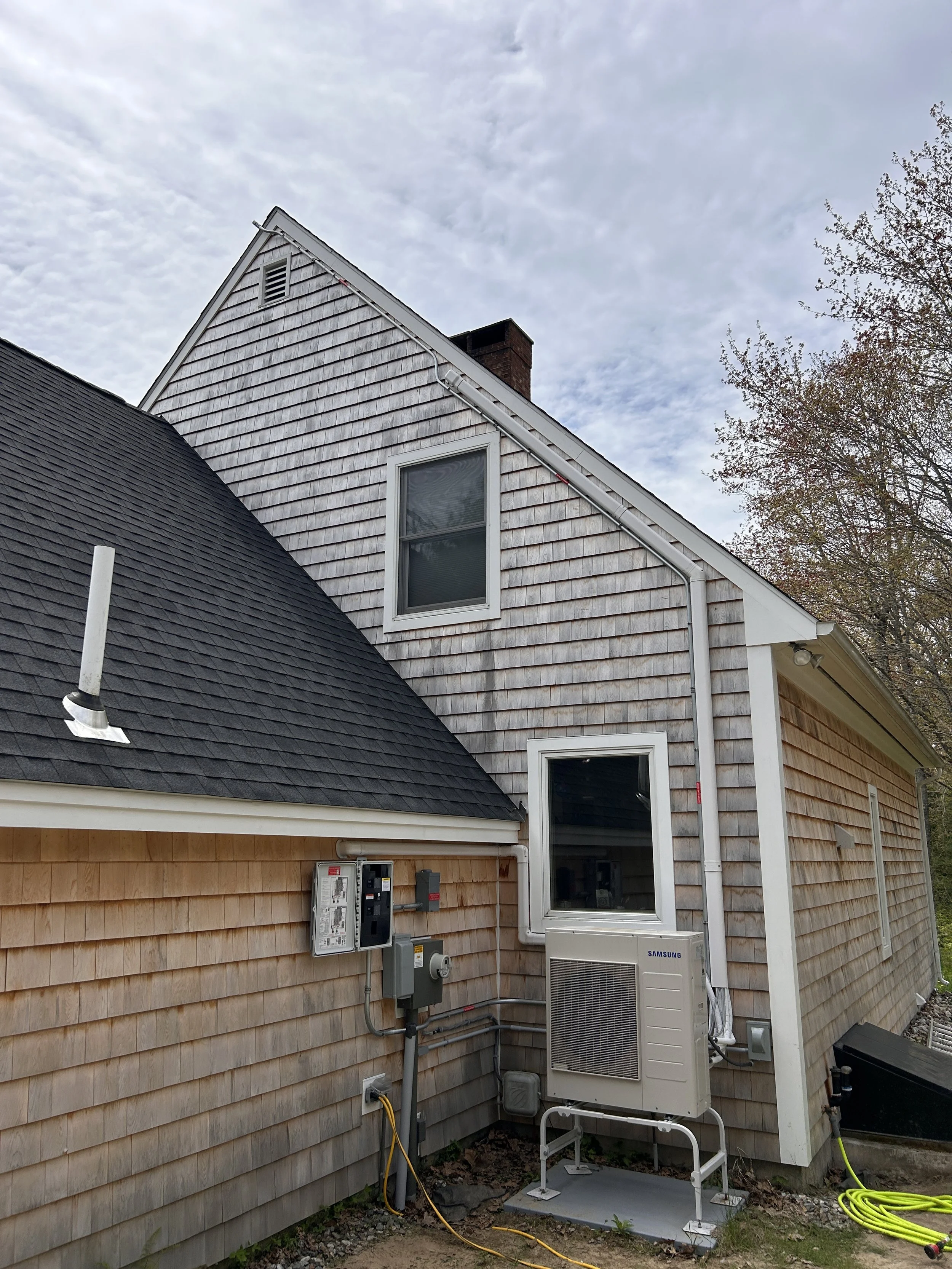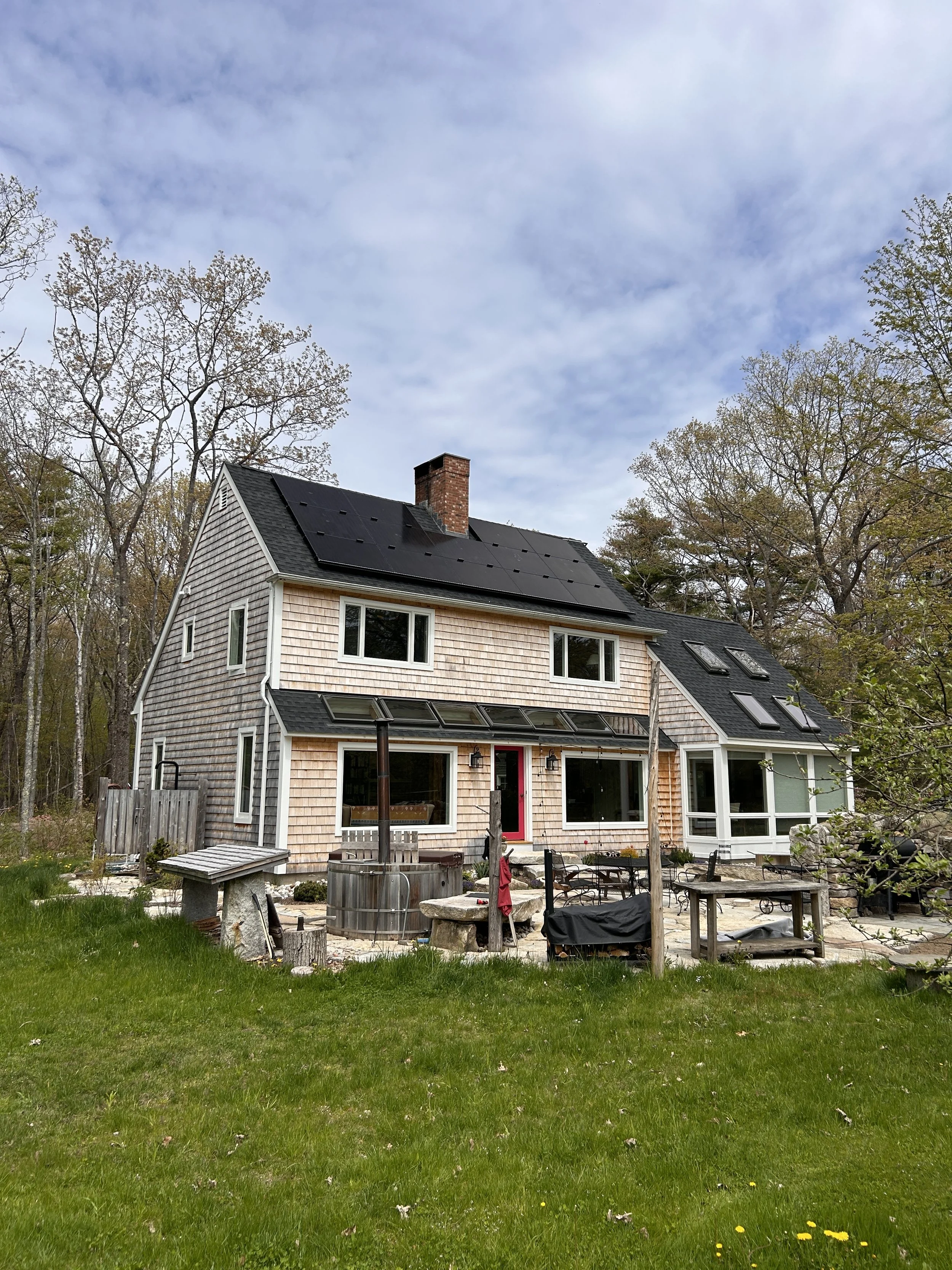 Solar install in Brunswick, ME. We installed 14 Q-Tron 425’s and Enphase micro inverters. As well, to protect the awesome architecture of this home and protect the sky lights bellow the system. We installed snow dogs and an alpine snow guard.